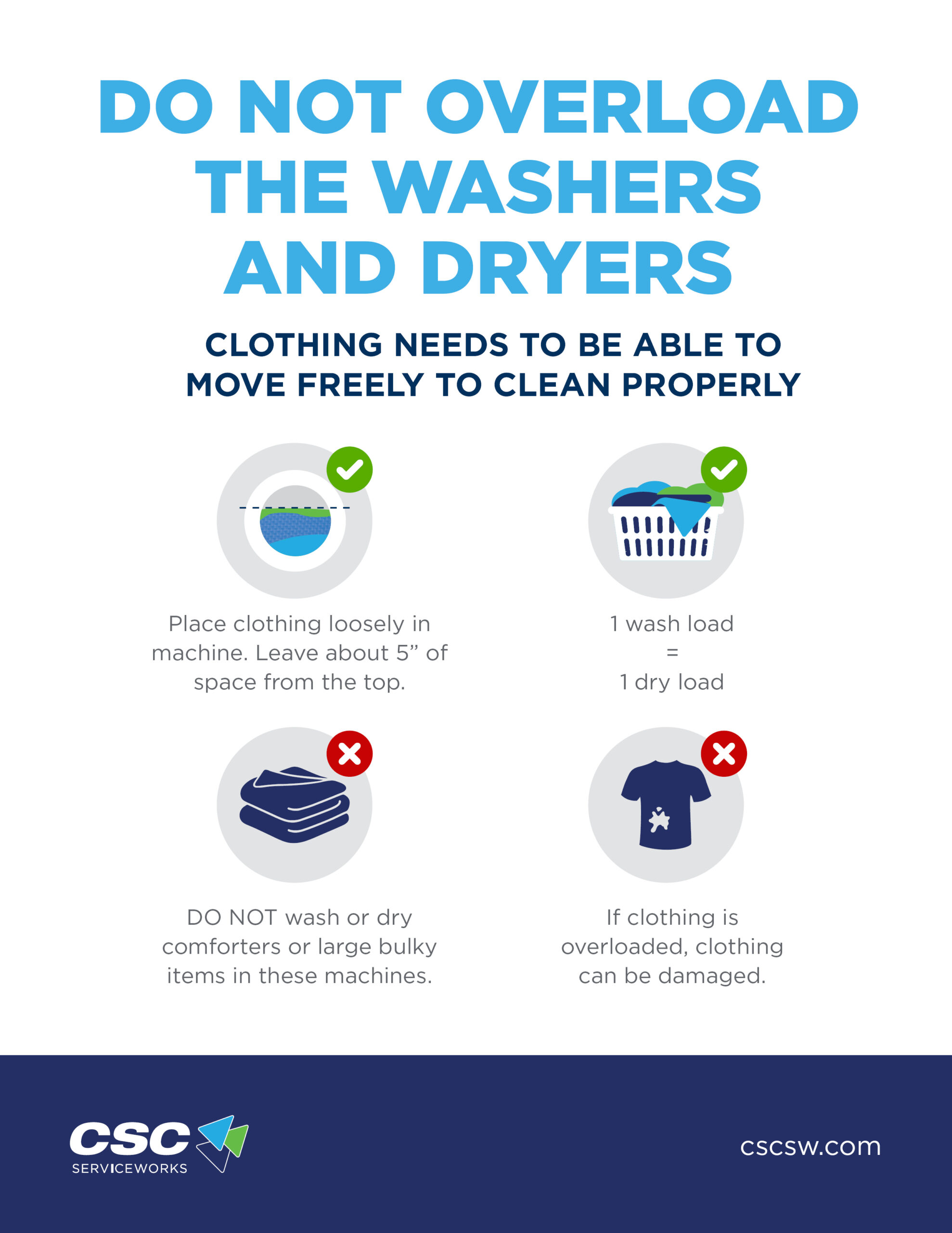 This flyer includes instructions to avoid overloading a top load machine.